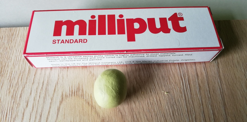 Milliput is a two part filler. Just chop off equal parts and pretend your a kid mixing two colours of plasticine.