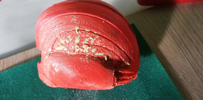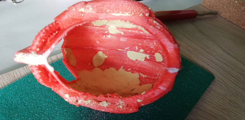 As you can see below, the helmet is so thin that light can easily pass through it. You can spot where the putty has been applied. You can also see where the layers didn't adhere correctly through printing.
