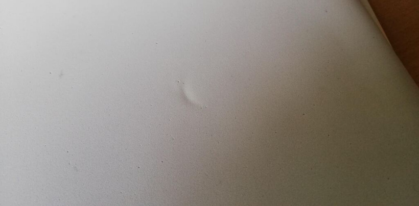 Both foam sheets had a slight indentation in them and are slightly pitted in places. The white one also had a mark on it.