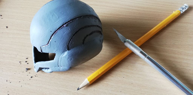 I added a few think layers and waited until it had nearly dried before taking it in to fix some of the details. I took my trusty craft knife to trace out some of the grooves and then used a pencil to clear out the unwanted primer.