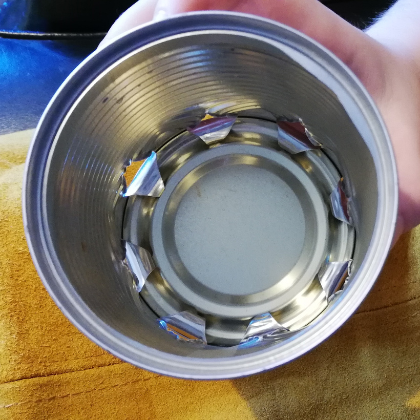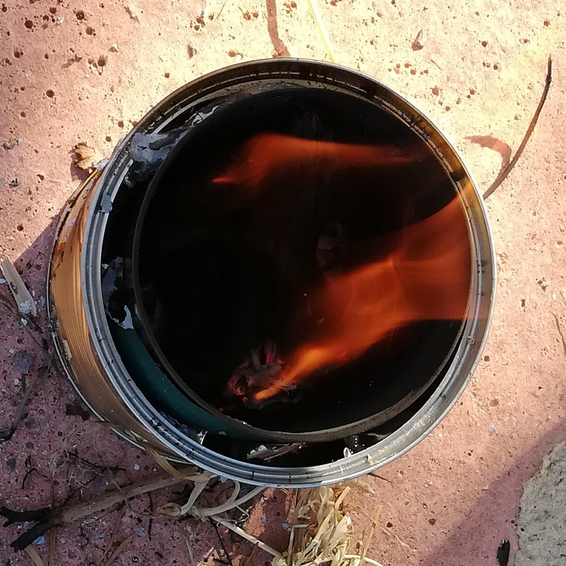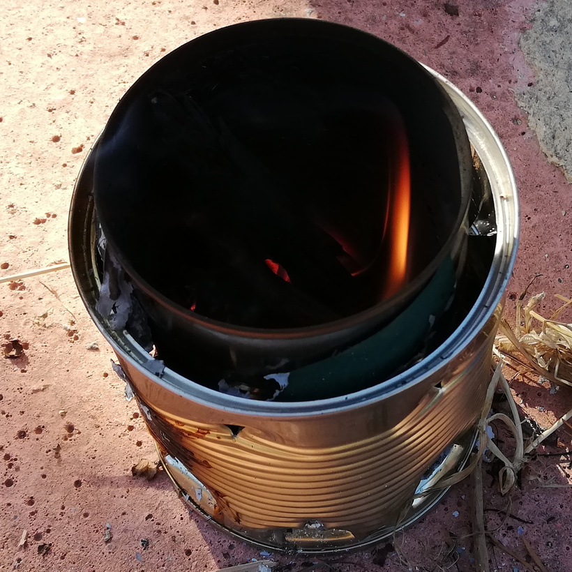 We'll probably add a few small holes in the bottom and sides of the inner can. The current version didn't burn for too long as the holes ended up getting blocked as the fuel burnt down.