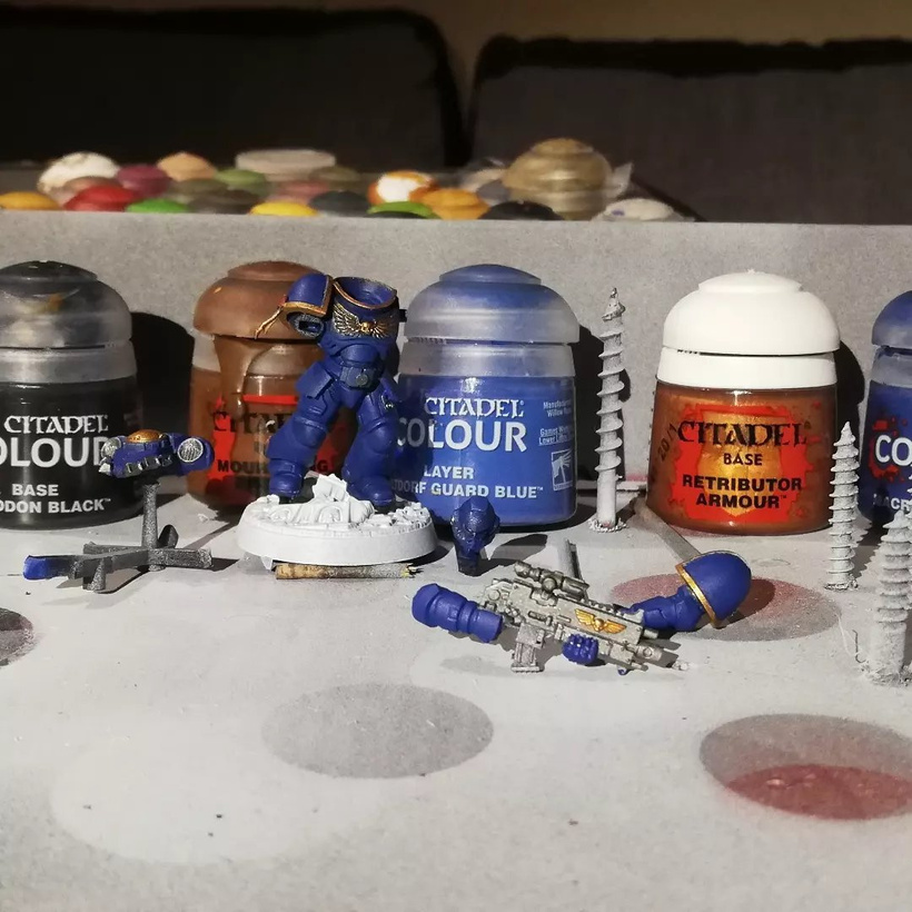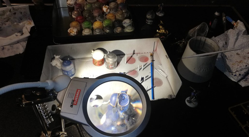 Model primed, I sat down to put down the base layers and some initial detailing.