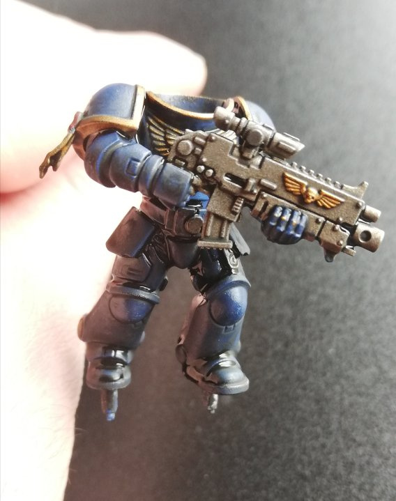Once the shade had dried, I dismantled the model again and applied shade to the areas I had missed just behind the gun and arm.